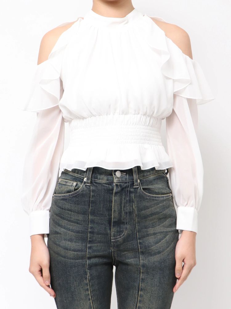 ホルターネックラッフルブラウス