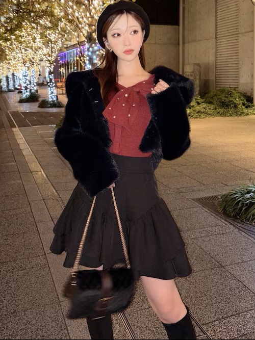 キルティングファーコンパクトバッグ