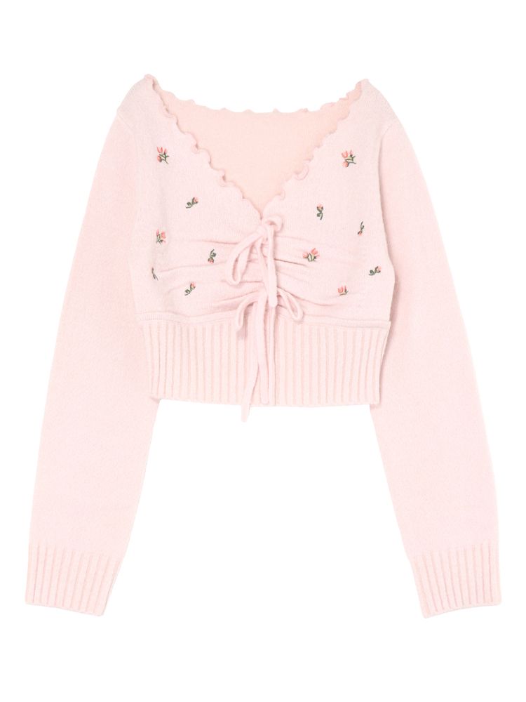フラワーエンブロイダリーニットトップス