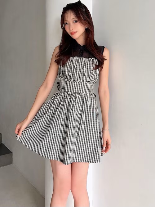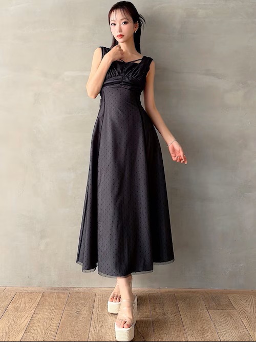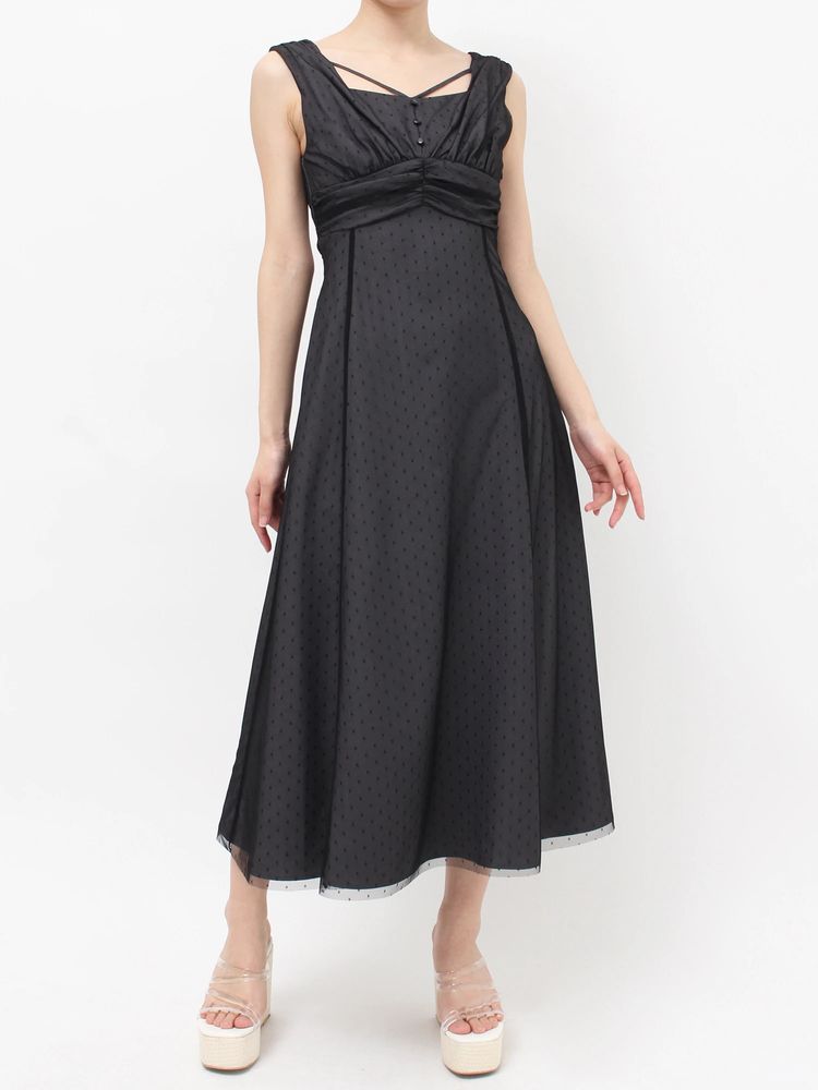 ドットチュールレイヤードワンピース