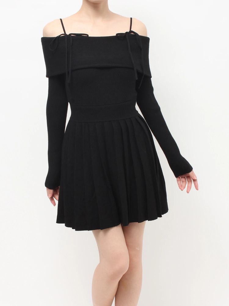 オフショルプリーツニットミニワンピース