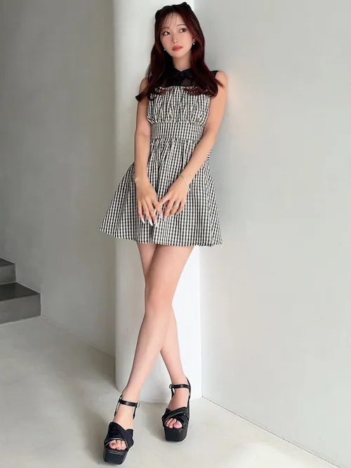 シャツレイヤードミニワンピース